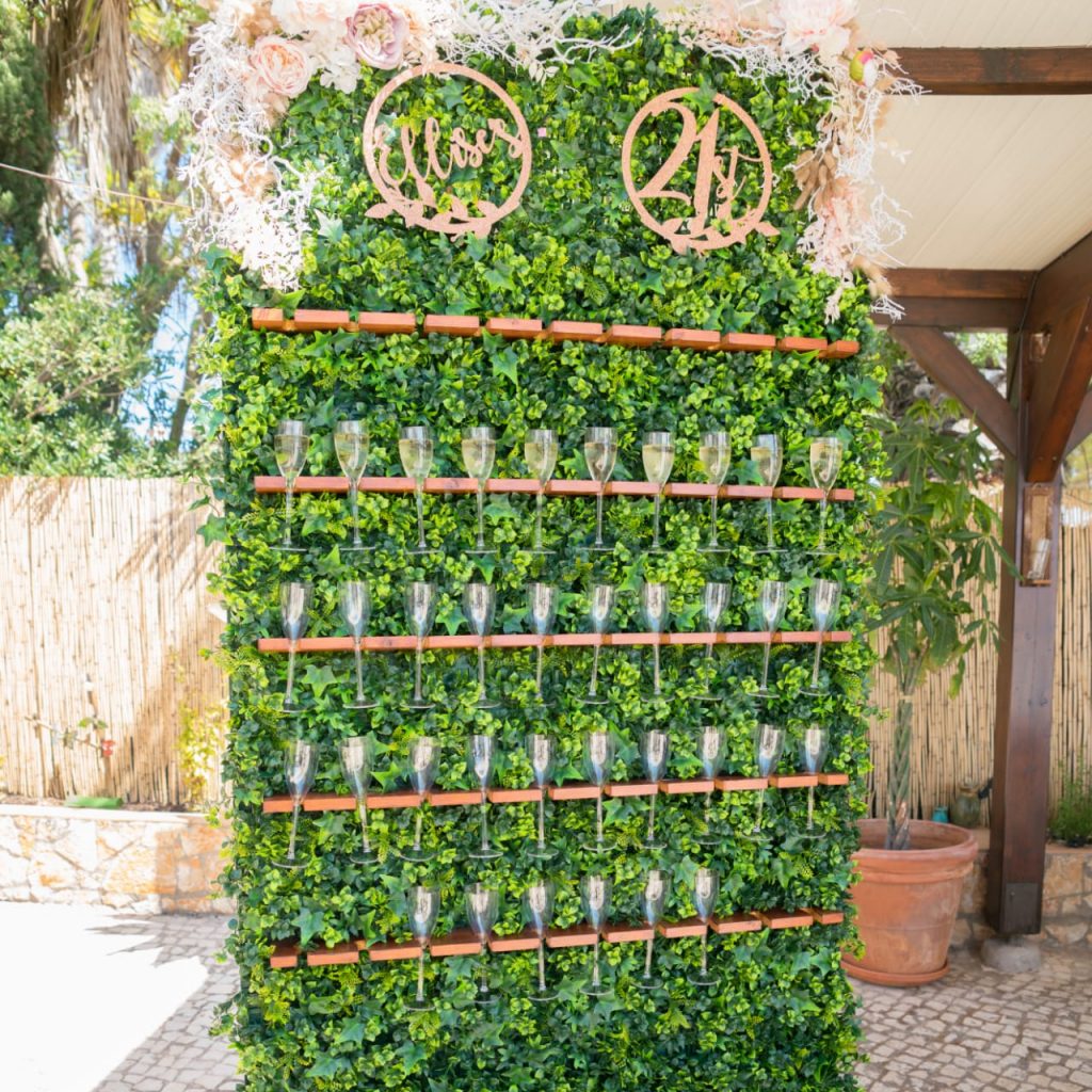 • Personalised champagne wall to hold your flutes